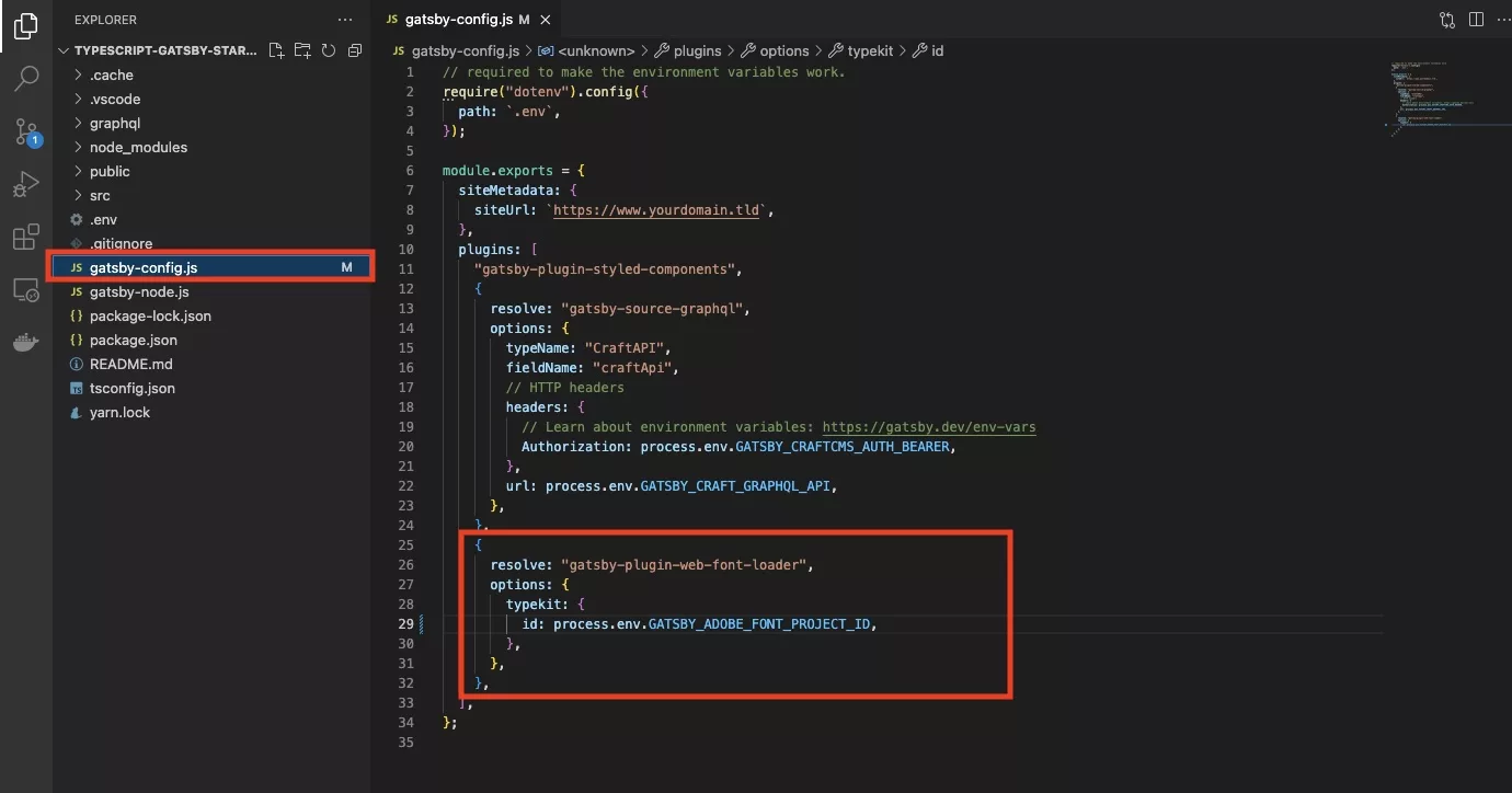 yarn add gatsby-plugin-web-font-loaderStep Two: Add the Environment Variable