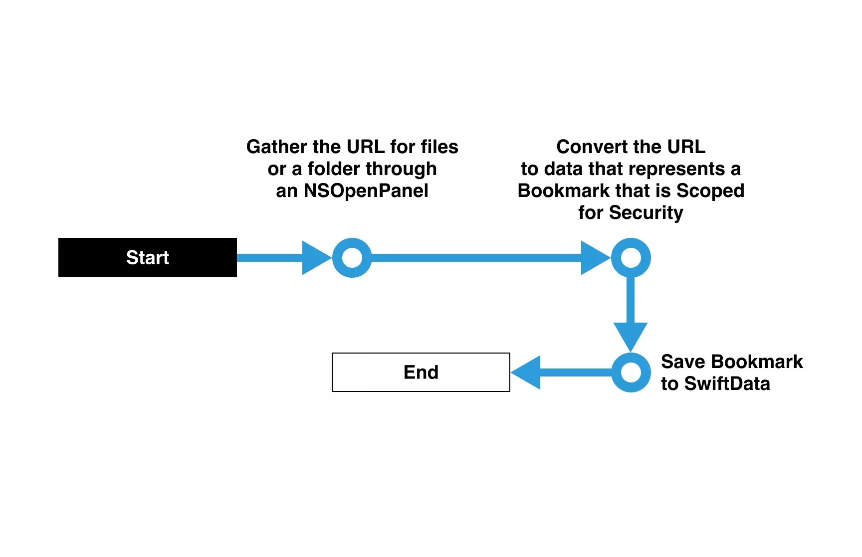 - I: Accessing the URL of files or a folder through an NSOpenPanel and saving the URLs bookmark to SwiftData.