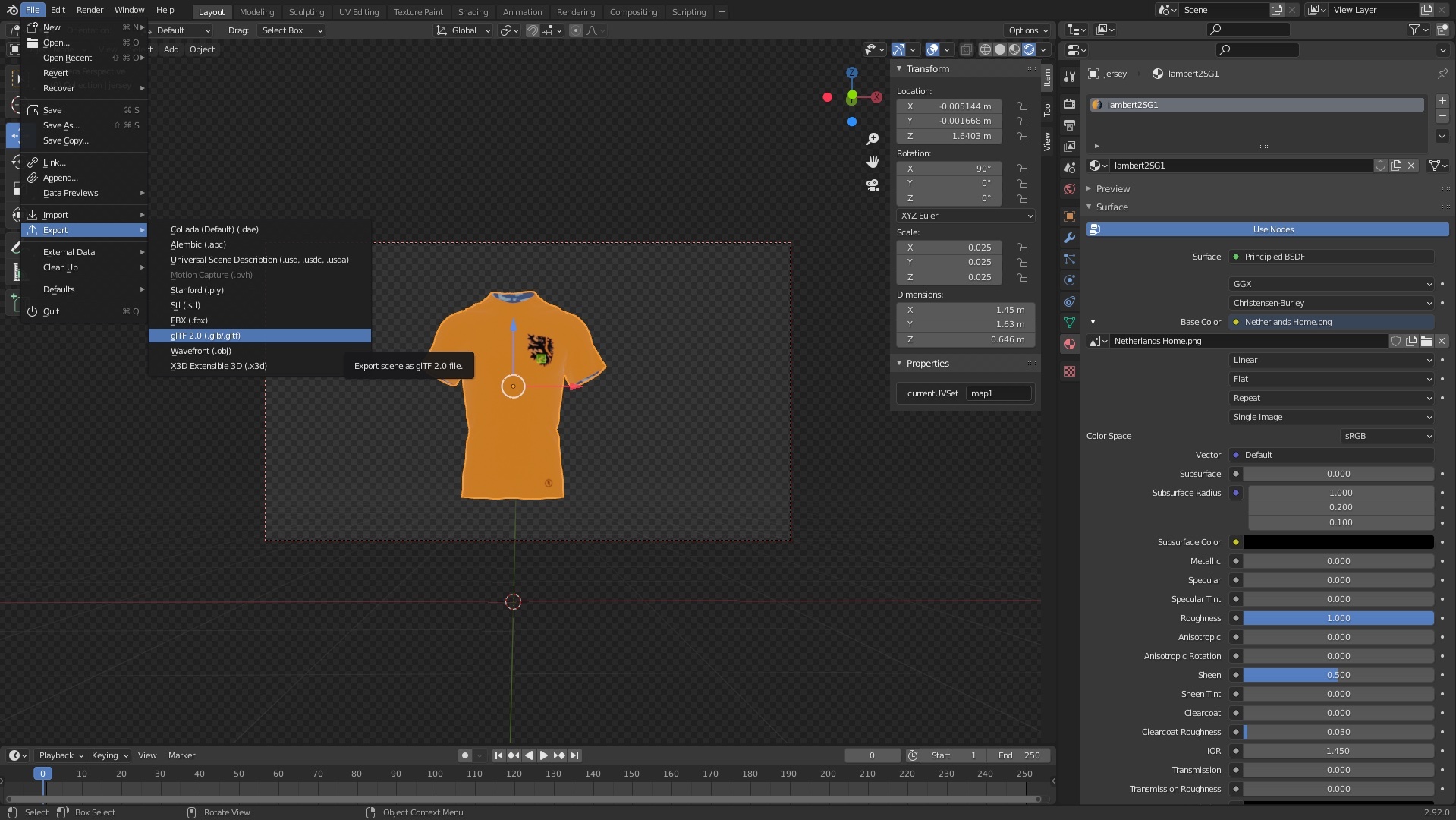 How to export the file as a GLB on Blender.